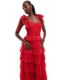Lace & Beads Bridesmaid Madison Bow Shoulder Midaxi Dress In Butter Yellow For Women Buttercup