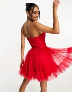 Lace & Beads Corset Overlay Tulle Bow Mini Dress In Rose Floral For Women Burgundy Rose Floral