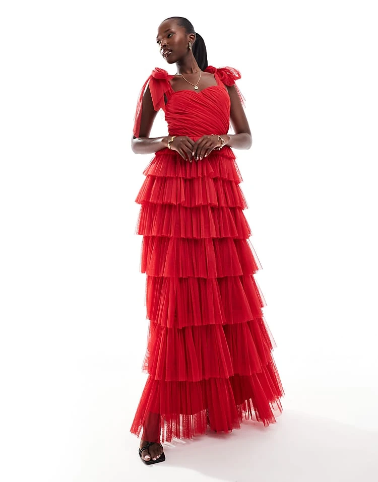 Lace & Beads Bridesmaid Madison Bow Shoulder Midaxi Dress In Butter Yellow For Women Buttercup