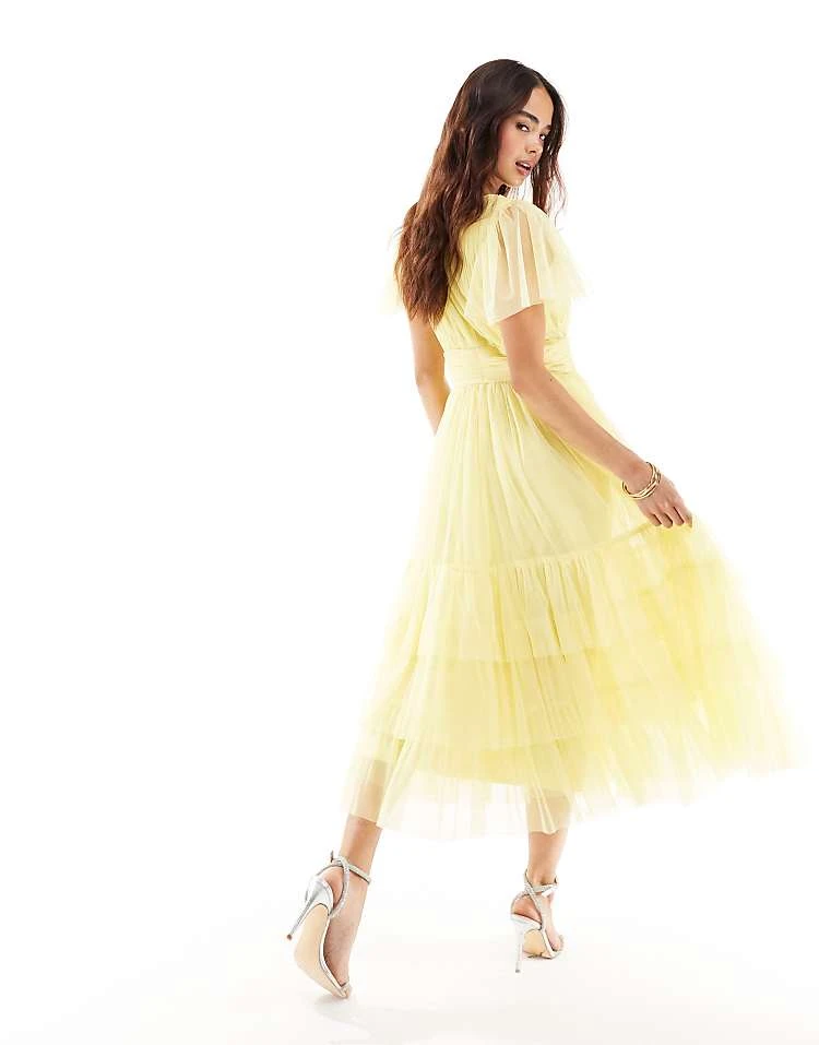 Lace & Beads Bridesmaid Madison Bow Shoulder Midaxi Dress In Butter Yellow For Women Buttercup