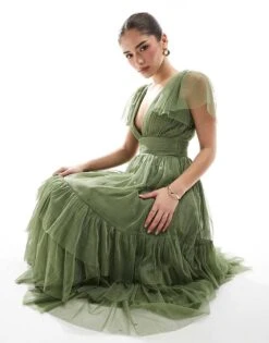 Lace & Beads Bridesmaid Madison Bow Shoulder Midaxi Dress In Butter Yellow For Women Buttercup