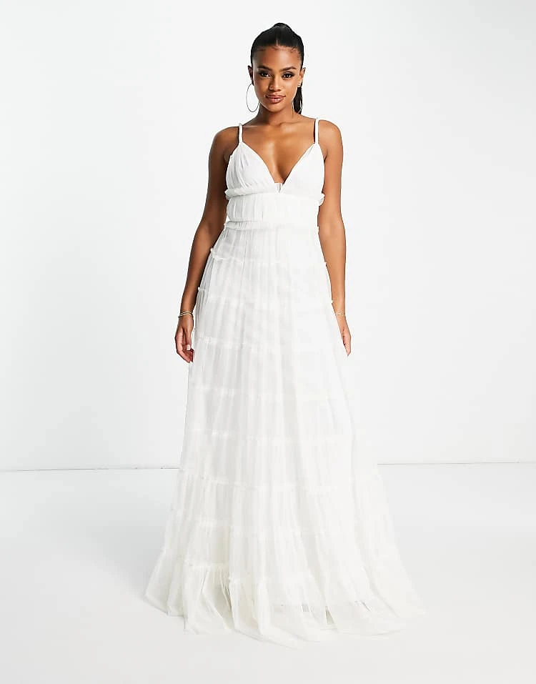 Lace & Beads Bridesmaid Madison Bow Shoulder Midaxi Dress In Butter Yellow For Women Buttercup