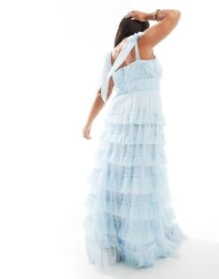 Lace & Beads Plus Tiered Ruffle Midaxi Dress In Sky Blue For Women
